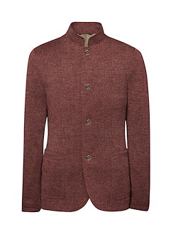 Crimson Red Flannel Cashmere Blend Stand Collar Hybrid Blazer