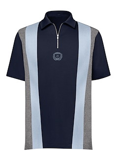 Navy Supima Interlock Jersey Vertical Trio Zip Polo