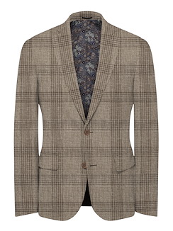 Bourbon and Taupe Tonal Textured Linen Wool Plaid Sportcoat