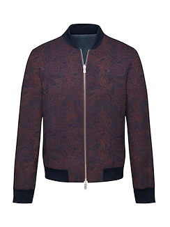 Magenta and Navy Paisley Jacquard Bomber Jacket